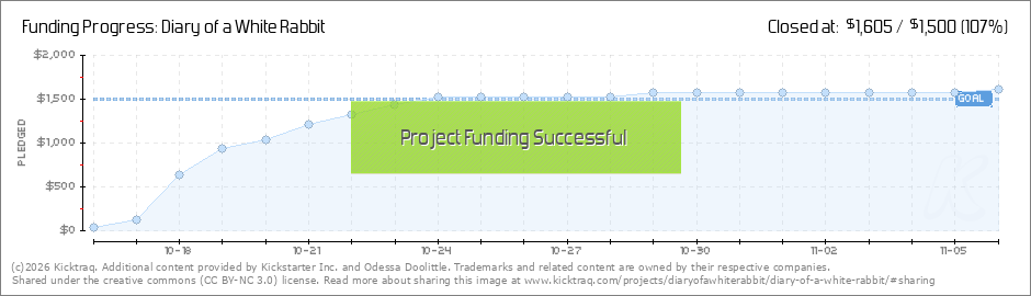 Diary of a White Rabbit is 95% funded! And I couldn't be more grateful and appreciative of all of you. Every single dollar and every single backer has gotten this project to this point in only one week, and I am THRILLED! I can never say it... (Read More)