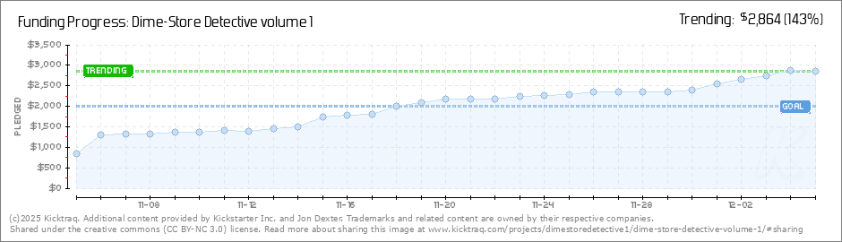 We are getting closer to being funded! I want to thank you for backing Dime-Store Detective volume 1. With 22 days left I have plenty of time to make it happen. If you are planning on attending the Grand Rapids Comic Con in Michigan I will be there... (Read More)