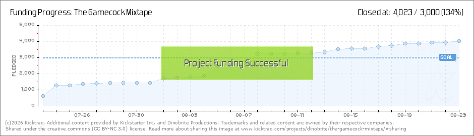 Help your backers reach your daily goals and help others see how you're doing. It's easy, with Kicktraq Mini.Here are a few quick snippits of code you can use to embed your personalized widget on your website, in your blog, and even on your favorite forum.