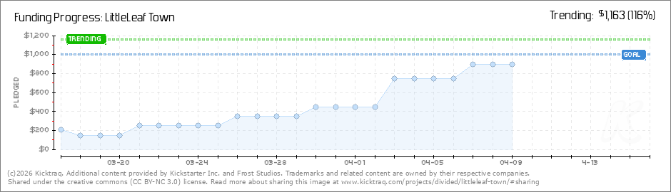 Help your backers reach your daily goals and help others see how you're doing. It's easy, with Kicktraq Mini.Here are a few quick snippits of code you can use to embed your personalized widget on your website, in your blog, and even on your favorite forum.