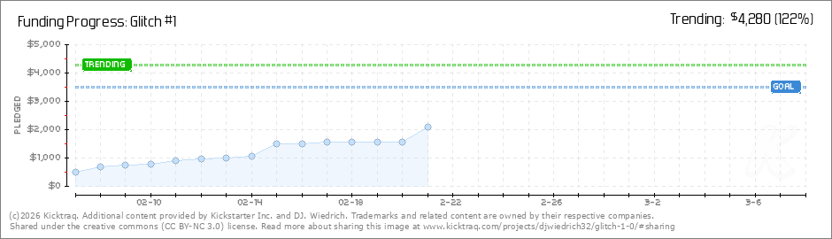 Help your backers reach your daily goals and help others see how you're doing. It's easy, with Kicktraq Mini.Here are a few quick snippits of code you can use to embed your personalized widget on your website, in your blog, and even on your favorite forum.