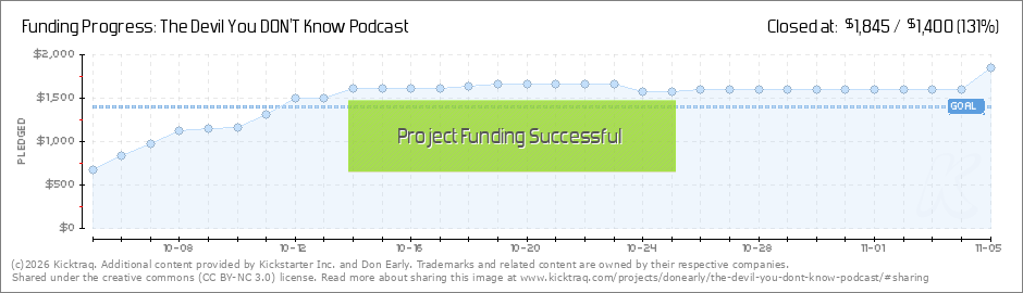 Thank you all! We are over half way there and it's only the beginning of Day 2! We will be posting sharable promos on our Facebook page: https://www.facebook.com/thedevilpodcast So please help boost the signal! We absolutely need every bit of... (Read More)