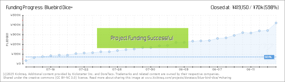 Thank you for your supports !!We have reached the 140000JPY Goal ! The next stretch goal is the "CROW" dice, 1750000JPY ! 皆様のご支援、ありがとうございます!140000円のゴールを達成しました!... (Read More)