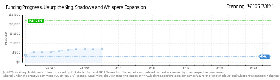 Help your backers reach your daily goals and help others see how you're doing. It's easy, with Kicktraq Mini.Here are a few quick snippits of code you can use to embed your personalized widget on your website, in your blog, and even on your favorite forum.