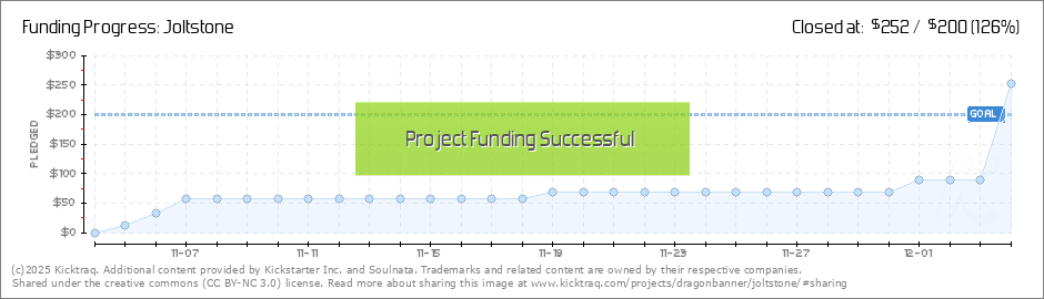 Thank you all so much for backing Joltstone, the next labor of love from a solo developer. We have made great progress toward our goal in a short amount of time! I have been busy with marketing the launch on Kickstarter and would love your help.... (Read More)
