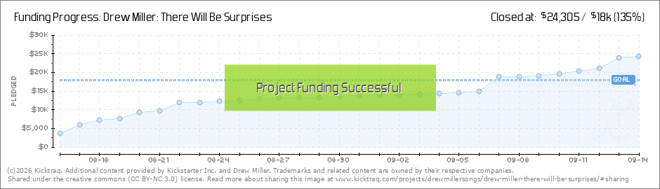 Eight days into my Kickstarter, 𝘛𝘩𝘦𝘳𝘦 𝘞𝘪𝘭𝘭 𝘉𝘦 𝘚𝘶𝘳𝘱𝘳𝘪𝘴𝘦𝘴 is two thirds of the way funded. Hot dog, you guys! I’m astounded by your generosity. Let’s bring this album across the... (Read More)