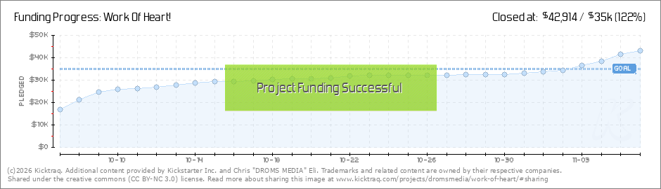 Work of Heart is off to a great start! In less than a week, we've managed to raise $26,000. That's crazy work! Thank you to everyone who even considered supporting our project. I don't want to say too much yet; rather save all the sappy stuff for if... (Read More)