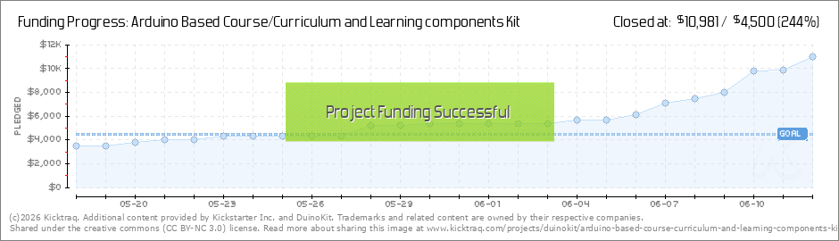 Thank you for backing and sharing the DuinoKit Educator project. I'm looking forward to sharing this with you. Please share the project with others and I welcome your input on what you feel would be helpful to learn or things you would like to... (Read More)