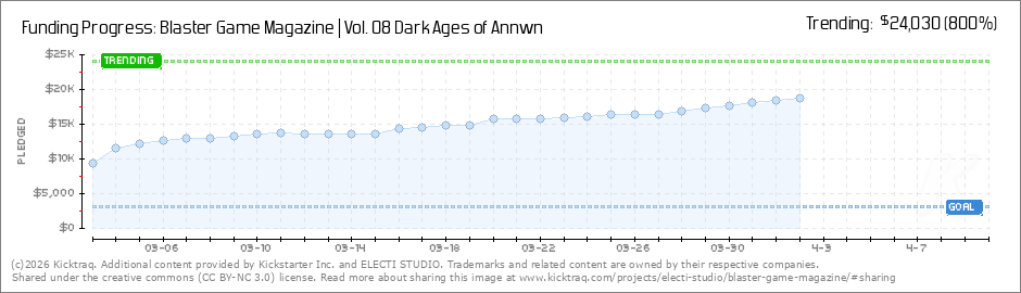 Help your backers reach your daily goals and help others see how you're doing. It's easy, with Kicktraq Mini.Here are a few quick snippits of code you can use to embed your personalized widget on your website, in your blog, and even on your favorite forum.