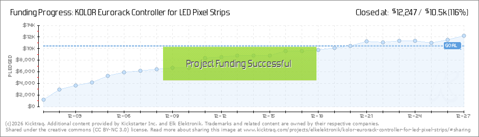 Wow, it is really fantastic news that we have reached our funding goal! Thank you all so much for investing in our new KOLOR module! I really enjoy trying out different KOLOR effects myself and can't wait for you to explore it too! We still have a... (Read More)