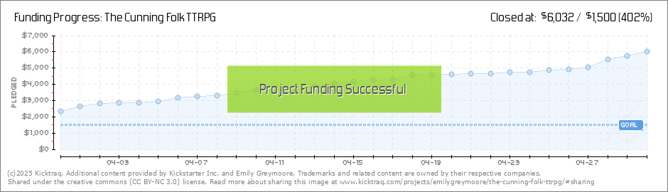 Thanks to you The Cunning Folk fully funded in less than 3 hours!! Not just that, but by the end of day 1, we were 170% funded!! This morning the campaign was at $2500, and it's still slowly climbing. I'm currently sitting in a state of humbled... (Read More)