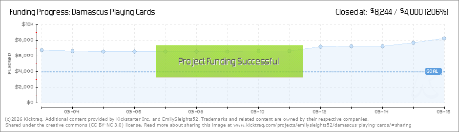 Friends! THANK YOU for supporting Damascus Playing Cards! I was surprised to see that we funded the deck in less than an hour. So many of Damascus' backers have backed one or multiple of my previous projects as well and the support just amazes me... (Read More)