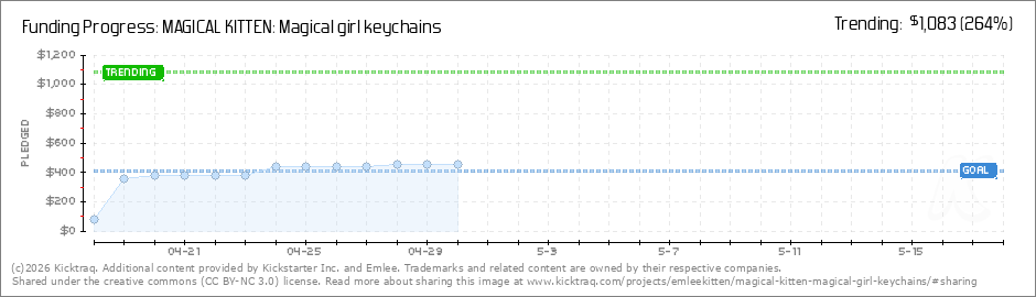 Help your backers reach your daily goals and help others see how you're doing. It's easy, with Kicktraq Mini.Here are a few quick snippits of code you can use to embed your personalized widget on your website, in your blog, and even on your favorite forum.