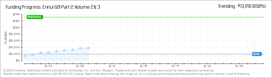 Help your backers reach your daily goals and help others see how you're doing. It's easy, with Kicktraq Mini.Here are a few quick snippits of code you can use to embed your personalized widget on your website, in your blog, and even on your favorite forum.