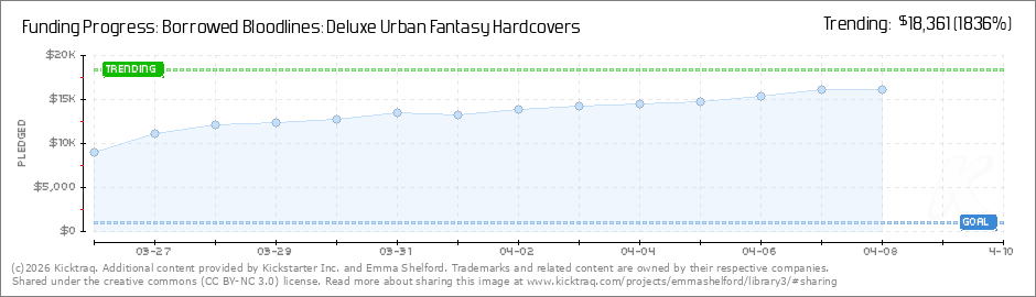 Hello, my amazing library backers, There are so many of you now! I am humbled and excited that you are all here. I'm doing the final readthrough of Borrowed Bloodlines, and it's well on track to being sent to the printers at the end of the campaign.... (Read More)