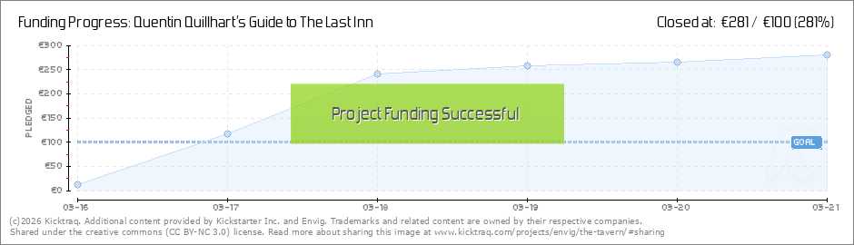 Hello, all you excellent people! As our pilot has exceeded our expectations, we've added some stretch goals to show our appreciation: €200: An extra NPC [Achieved!] €300: An extra magic item [Almost there] €400: An extra quest [Can we get... (Read More)