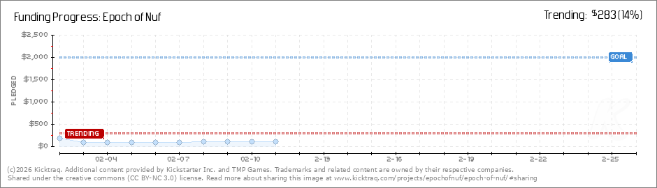 Help your backers reach your daily goals and help others see how you're doing. It's easy, with Kicktraq Mini.Here are a few quick snippits of code you can use to embed your personalized widget on your website, in your blog, and even on your favorite forum.