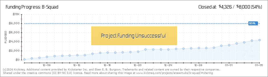 Hey gang, If you didn't hear through our Kickstarter 2.0, B-Squad funded on Friday thanks in large part to backers here embracing us again!! If you still want B-Squad action, head over to the Kickstarter and get yourself involved in a successful,... (Read More)
