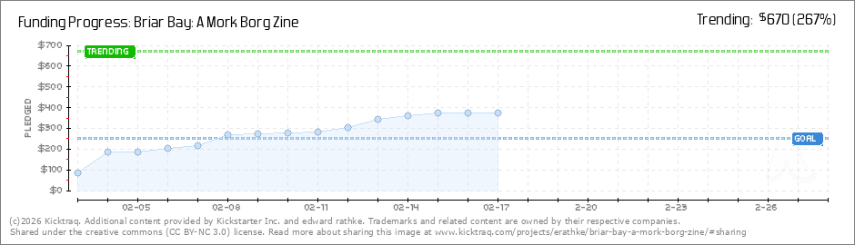 Thank you all for supporting this little zine! We're over halfway to our funding goal, which ain't bad! Especially considering this is my first crowdfunding campaign for a TTRPG. I'm hopeful that we'll soon meet our funding goal and start working... (Read More)