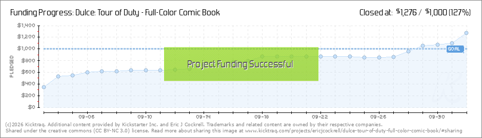 We've reached our main goal! Thank you to every single person that helped us get there! We're working on sweetening the deal and our first stretch goal will add 8 incredible indie digital comics for every backer! www.dulcecomic.com ---------------... (Read More)