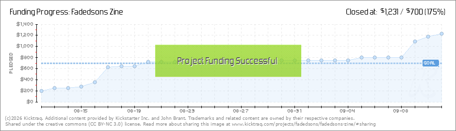 Help your backers reach your daily goals and help others see how you're doing. It's easy, with Kicktraq Mini.Here are a few quick snippits of code you can use to embed your personalized widget on your website, in your blog, and even on your favorite forum.
