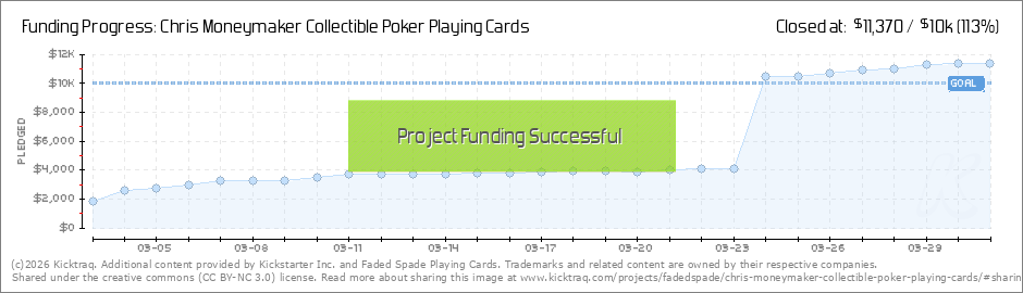 We're excited to share that the campaign has reached its goal and all backers will receive their Chris Moneymaker Collectible Playing Card decks and/or autographed uncut sheets! Now let's run it up. There are six days remaining and we'll continue... (Read More)