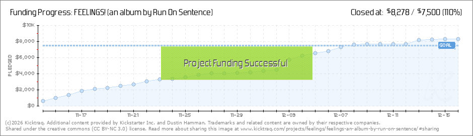 Help your backers reach your daily goals and help others see how you're doing. It's easy, with Kicktraq Mini.Here are a few quick snippits of code you can use to embed your personalized widget on your website, in your blog, and even on your favorite forum.