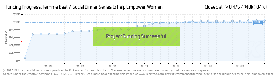 Dear Backers, I'm writing to say one thing: YOU. ARE. AWESOME. You helped Femme Beat raise over 50% of it's funding goal in 24 hours of launching! Unreal! THANK YOU SO MUCH! The November dinner is already confirmed on location (a beautiful... (Read More)