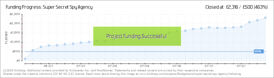 We have hit another stretch goal which means you will all receive Super Secret Spy IDs, these will give you access to the Super Secret Spy Server which will be updated with free one sheet missions and other cool stuff, plus you will be able to... (Read More)