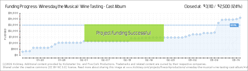 Thank you, thank you, thank you! 4 days left and we have reached our goal. With your incredible help, we WILL be recording the Winesday the Musical Cast Album! Once the Kickstarter is officially closed, we'll be reaching out to each of you to... (Read More)
