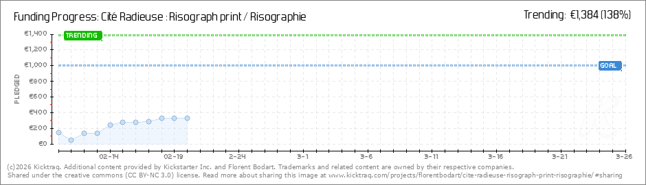 Help your backers reach your daily goals and help others see how you're doing. It's easy, with Kicktraq Mini.Here are a few quick snippits of code you can use to embed your personalized widget on your website, in your blog, and even on your favorite forum.