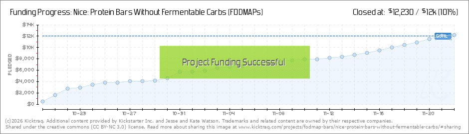 Food start-up launching Kickstarter campaign to make bars free of corn, wheat, dairy, soy, and low in FODMAPs. FODMAPs are carbohydrates found in common foods, shown to trigger GI symptoms for many people with IBS. (Read More)