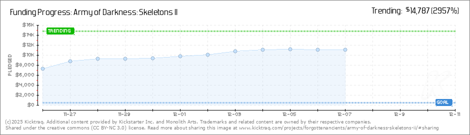 Help your backers reach your daily goals and help others see how you're doing. It's easy, with Kicktraq Mini.Here are a few quick snippits of code you can use to embed your personalized widget on your website, in your blog, and even on your favorite forum.