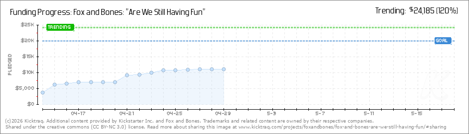 Help your backers reach your daily goals and help others see how you're doing. It's easy, with Kicktraq Mini.Here are a few quick snippits of code you can use to embed your personalized widget on your website, in your blog, and even on your favorite forum.