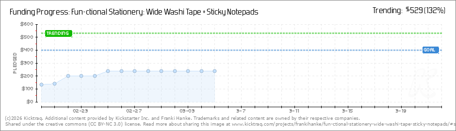 Help your backers reach your daily goals and help others see how you're doing. It's easy, with Kicktraq Mini.Here are a few quick snippits of code you can use to embed your personalized widget on your website, in your blog, and even on your favorite forum.