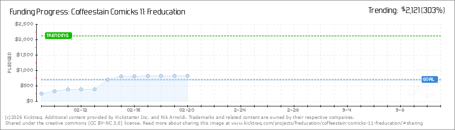 Help your backers reach your daily goals and help others see how you're doing. It's easy, with Kicktraq Mini.Here are a few quick snippits of code you can use to embed your personalized widget on your website, in your blog, and even on your favorite forum.
