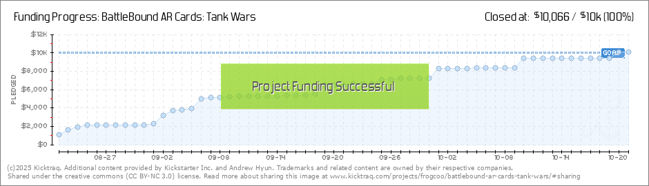 Help your backers reach your daily goals and help others see how you're doing. It's easy, with Kicktraq Mini.Here are a few quick snippits of code you can use to embed your personalized widget on your website, in your blog, and even on your favorite forum.
