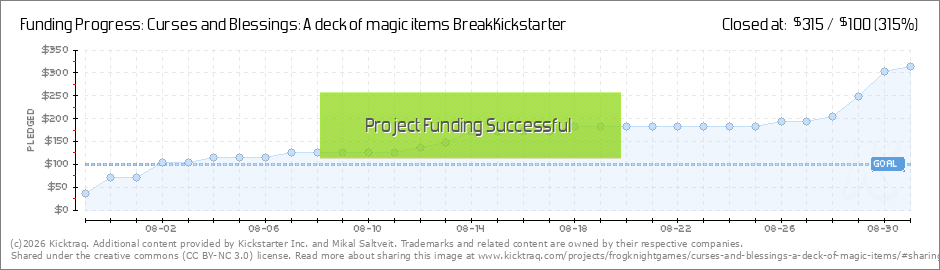 Thank you so much to all the backers so far! Now that the project is funded, I will put some time into calculating stretch goals. There is some point at which bulk deck pricing kicks in and I can afford to offer additional cards. I have an idea for... (Read More)