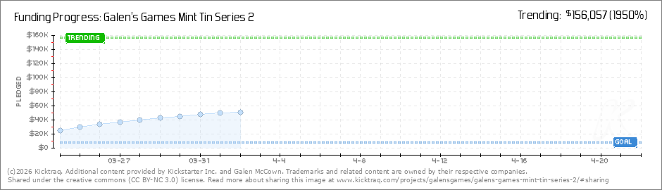 Help your backers reach your daily goals and help others see how you're doing. It's easy, with Kicktraq Mini.Here are a few quick snippits of code you can use to embed your personalized widget on your website, in your blog, and even on your favorite forum.