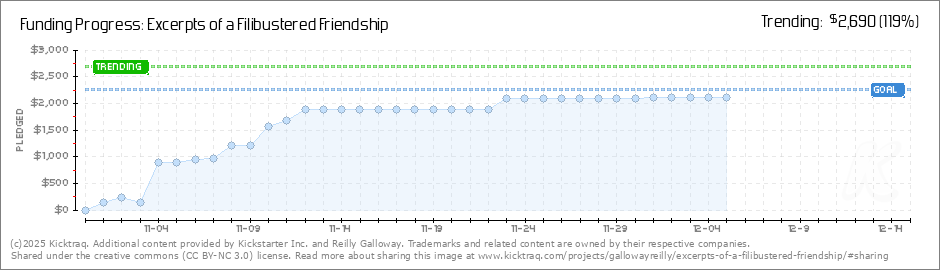 Help your backers reach your daily goals and help others see how you're doing. It's easy, with Kicktraq Mini.Here are a few quick snippits of code you can use to embed your personalized widget on your website, in your blog, and even on your favorite forum.