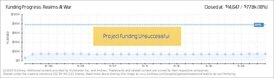 Hello backers, This is a difficult final update for the Realms At War campaign. With less than 24 hours remaining, we are currently only 19% funded. So the time has come to face the fact that we will not reach the necessary funding goal. What This... (Read More)