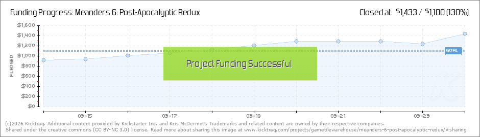Help your backers reach your daily goals and help others see how you're doing. It's easy, with Kicktraq Mini.Here are a few quick snippits of code you can use to embed your personalized widget on your website, in your blog, and even on your favorite forum.