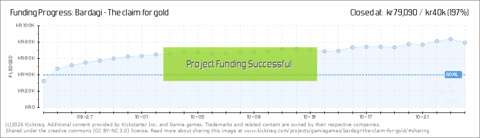 Now we have reached a great milestone: 100 backers! That is absolutely fantastic and we are thankful for the great support we are receiving with Bardagi - The claim for Gold! Thank you so much for the support! For the Glory! (Read More)
