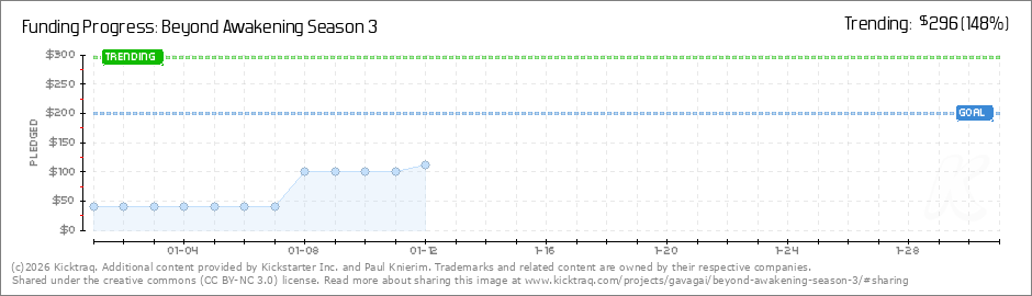 Help your backers reach your daily goals and help others see how you're doing. It's easy, with Kicktraq Mini.Here are a few quick snippits of code you can use to embed your personalized widget on your website, in your blog, and even on your favorite forum.