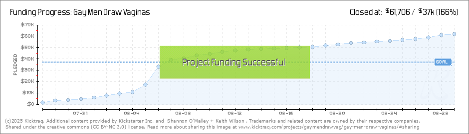 Dear Global Vaginal Leaders,Thank you to each of you for our collective success: today we made our goal of $37,000! This means that we have enough money to print, at a minimum, 1,000 full-color, hardcover copies of GAY MEN DRAW VAGINAS at our fancy... (Read More)
