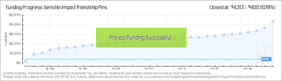 The kickstarter has been funded and the Klee stretch goal has been unlocked. Thank you so so much to everyone who has backed this project, I honestly wasn't expecting many pledges so I'm so grateful to everyone. I'm very excited to get my first pins... (Read More)