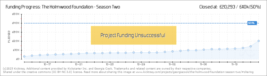 We've hit 5K! Thank you to everyone who has supported us so far! As promised, we're revealing one of the seven new cast members who will be joining us [if funded] for Season Two of the Holmwood Foundation! We’re excited to announce that the... (Read More)