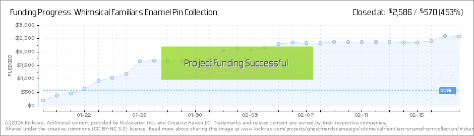Within just a few days we’ve reached our funding goal for the first 3 designs, which guarantees the production of the konpeito mini pins, the soot sprite, and Jiji! With that success met, we can move on to unlocking our first stretch goal, the... (Read More)