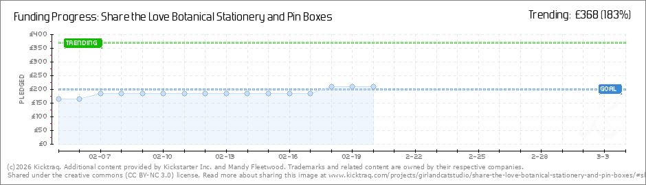 Help your backers reach your daily goals and help others see how you're doing. It's easy, with Kicktraq Mini.Here are a few quick snippits of code you can use to embed your personalized widget on your website, in your blog, and even on your favorite forum.