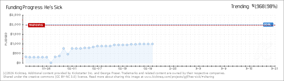 Help your backers reach your daily goals and help others see how you're doing. It's easy, with Kicktraq Mini.Here are a few quick snippits of code you can use to embed your personalized widget on your website, in your blog, and even on your favorite forum.